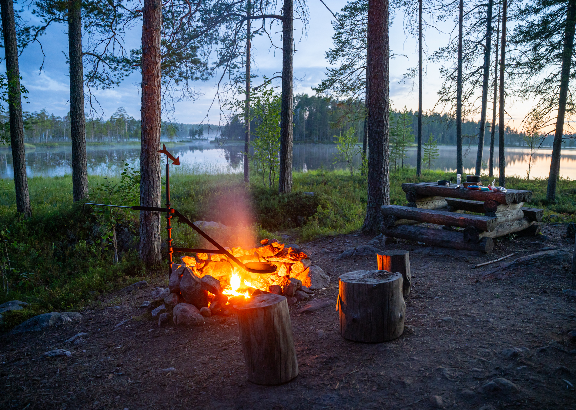 Let’s gather on a campfire next to a big lake to enjoy good food and hear stories about the history and life in Kuhmo. The guide will prepare the dinner on the fire and you can take part on the cooking if you like.