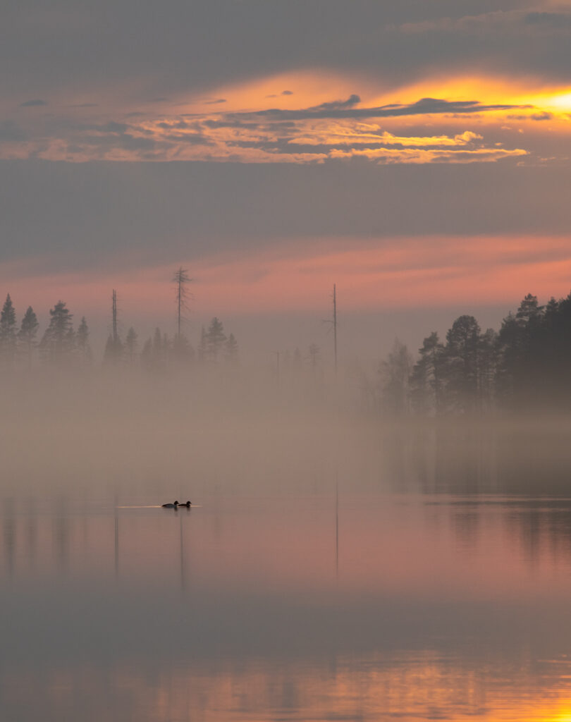 Autumn is perhaps the most underrated season. Forests turn vibrant red and gold and in the nighttime tha lakes are getting foggy, making it the best time for photographing landscapes. It’s also berry and mushroom season. Nights get darker again, so the aurora season starts in late August.