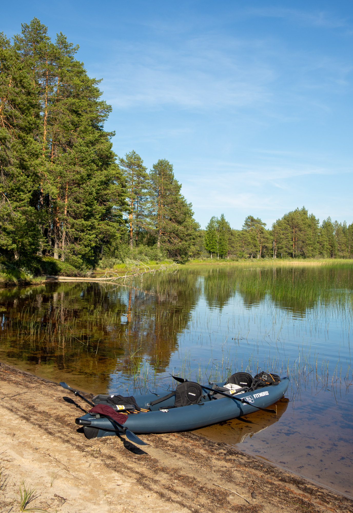 We rent inflatable FitNord “packraft” kayaks in Kuhmo. They fit easily in a car trunk! We have 2 double kayaks that can also be paddled solo by placing the seat in the middle. They carry up to 300 kg, perfect for longer adventures!